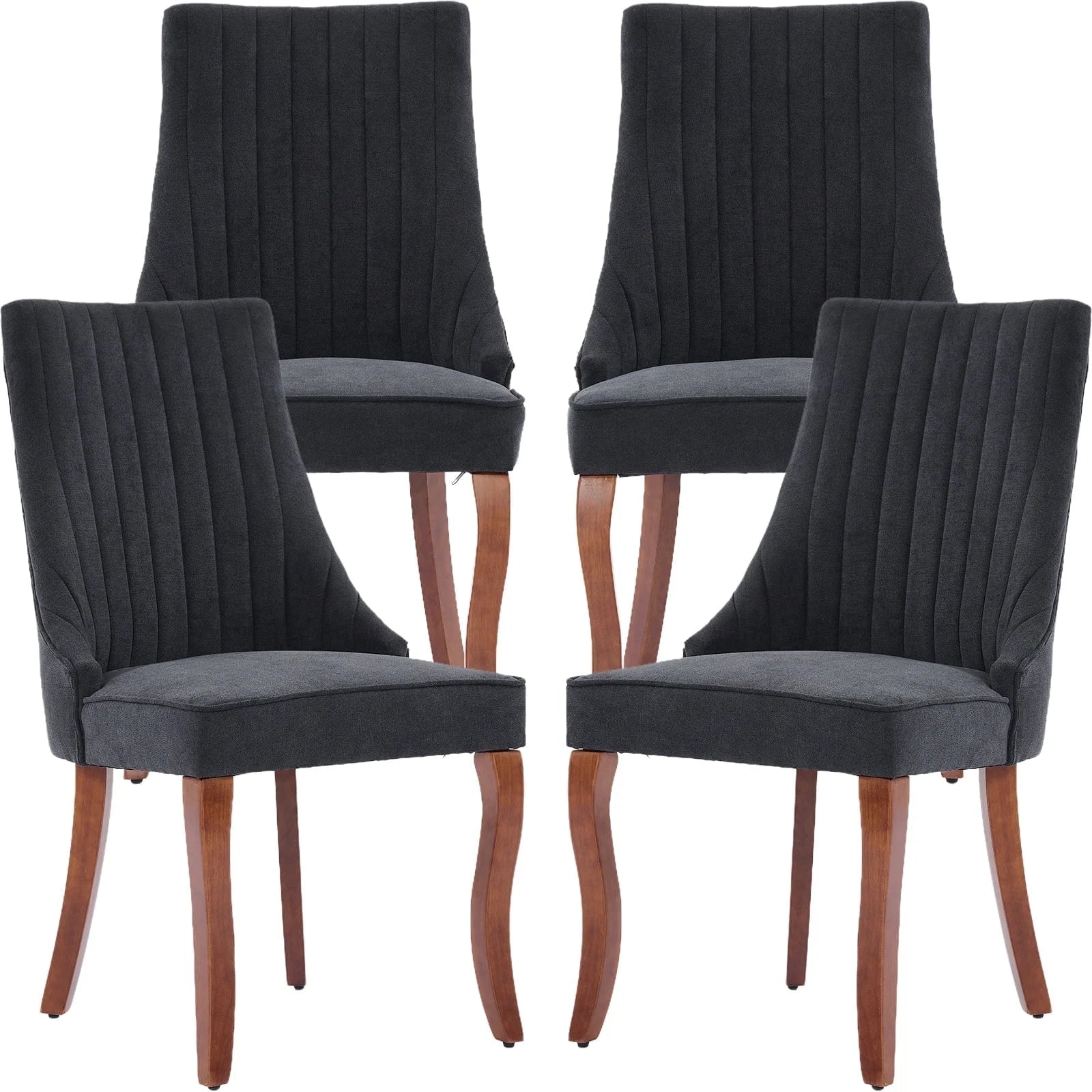 Upgrade your dining space with the Black Mid-Century Dining Chair Set, featuring four elegant chairs designed for comfort and timeless appeal. Each chair is crafted with soft linen upholstery and sturdy wooden legs, combining durability with a sleek retro look. Perfect for kitchens, dining rooms, or cafés, these chairs offer both style and everyday comfort.