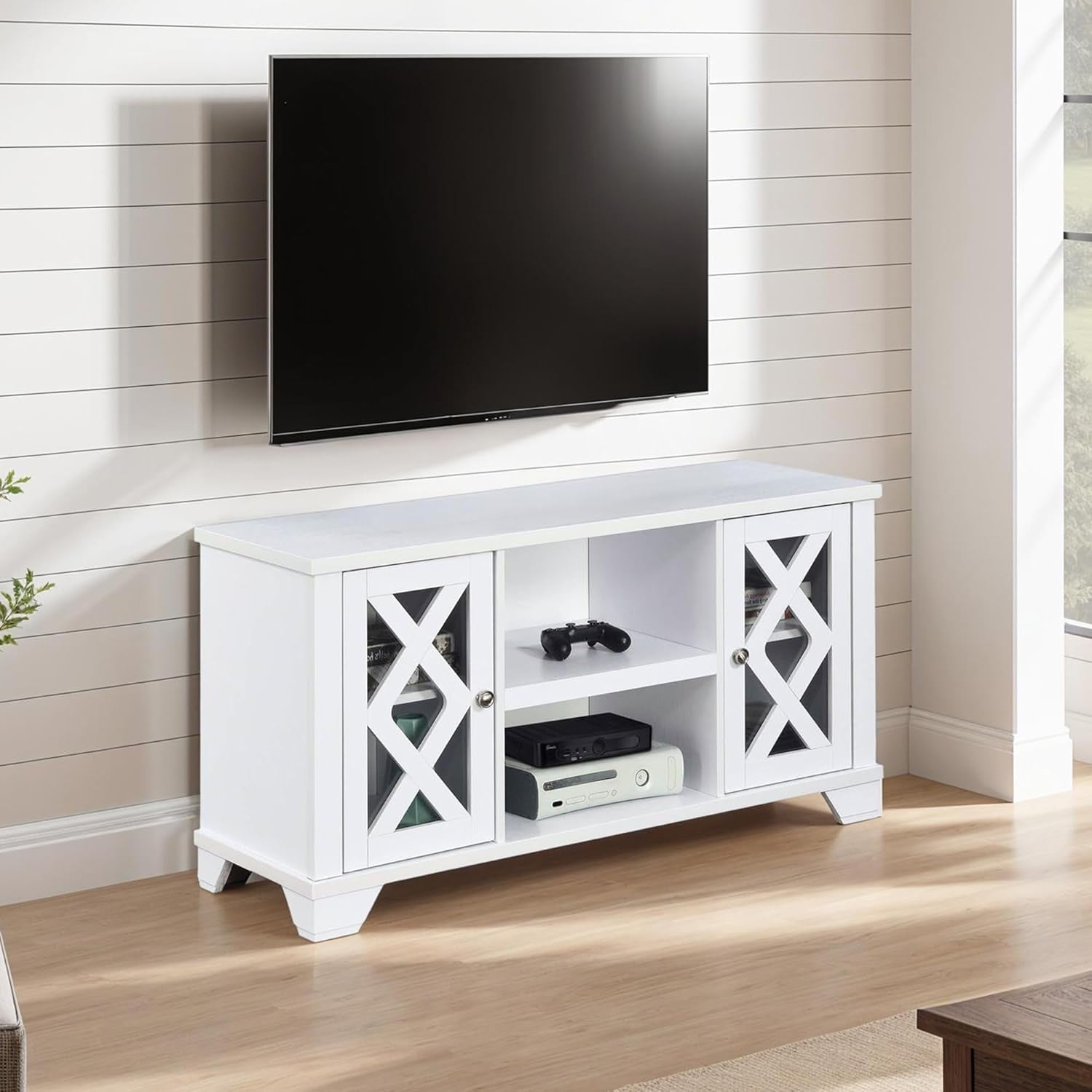 Enhance your living room or office with the Gateway 47" TV Stand, a classic and practical solution for your entertainment setup. Featuring a timeless white finish, this stand includes spacious cabinets and open shelves to organize your media devices, books, and décor items. Its sturdy design ensures stability, while the compact size fits perfectly in any family room or workspace. Blending traditional charm with modern utility, it’s ideal for creating a clean and welcoming atmosphere.