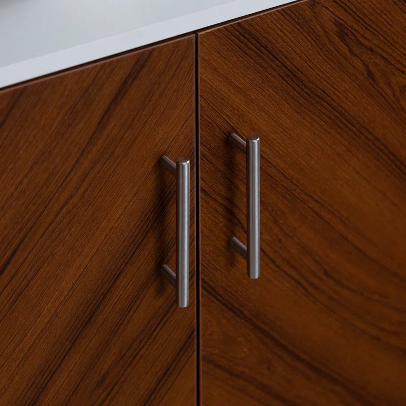 Frame your flat screen with this stylish and contemporary TV stand. Crafted from engineered wood, this piece features metal angled legs, book-matched styled cabinet doors, and a two-tone finish that works well with your modern décor. Two doors with metal handles open to reveal space for DVDs and other entertainment items, while two open shelves are perfect for holding game consoles, records, and books. A spacious surface top is great for housing flat screens up to 60 inches, while in the back, cable management easily organizes those pesky wires.