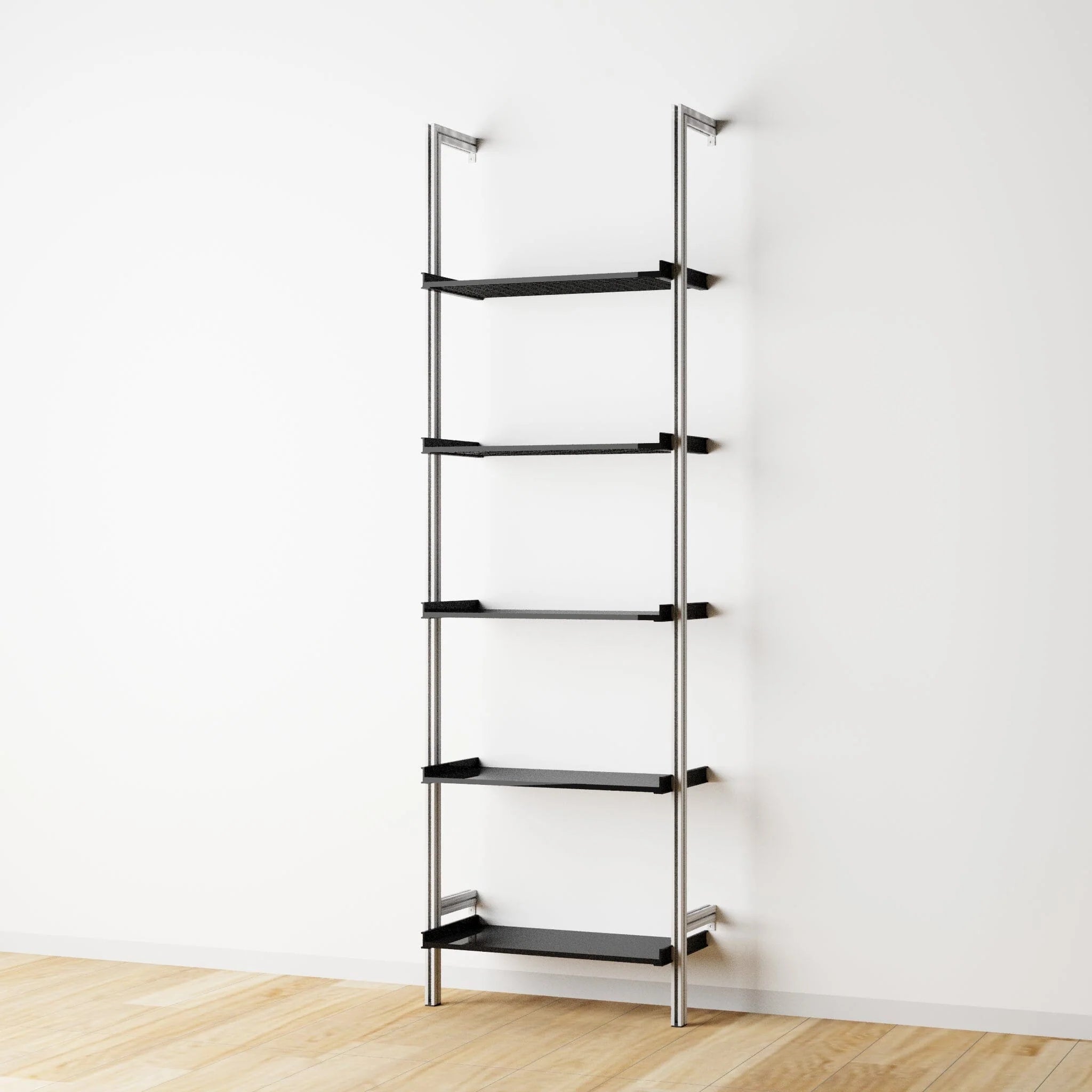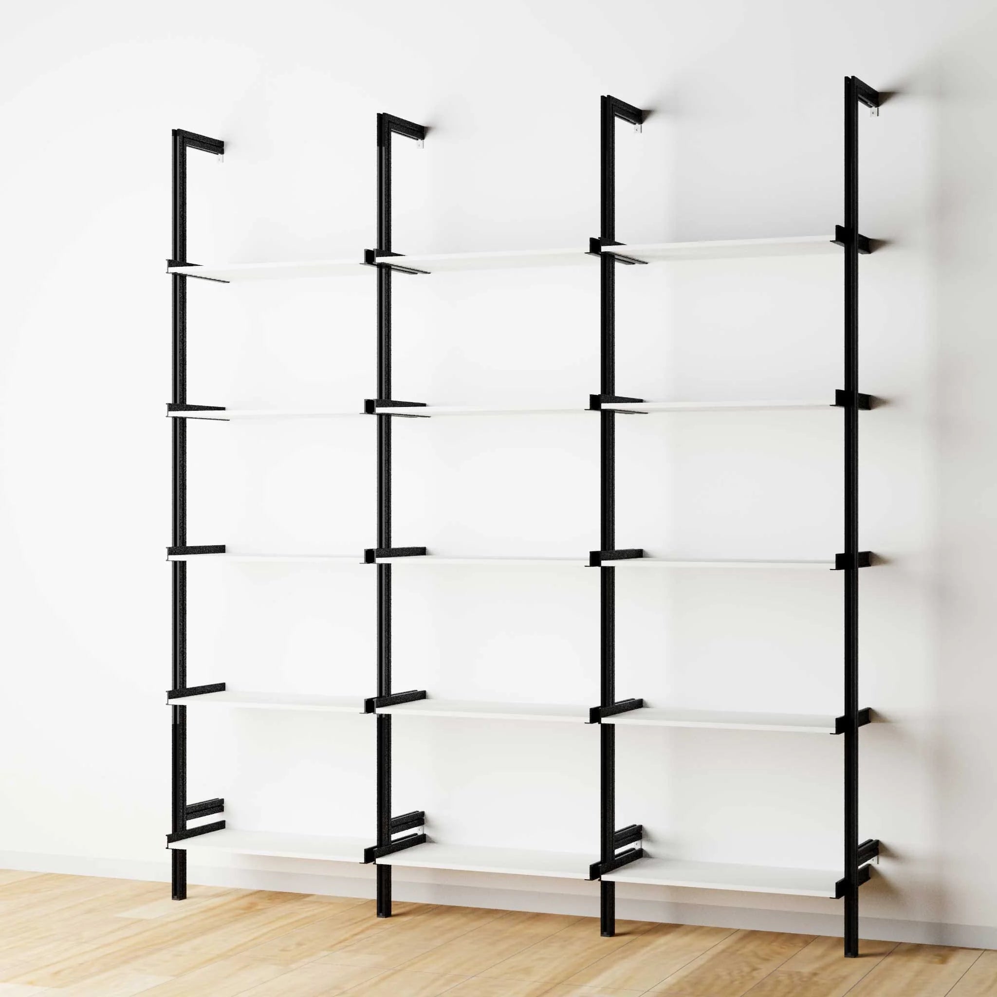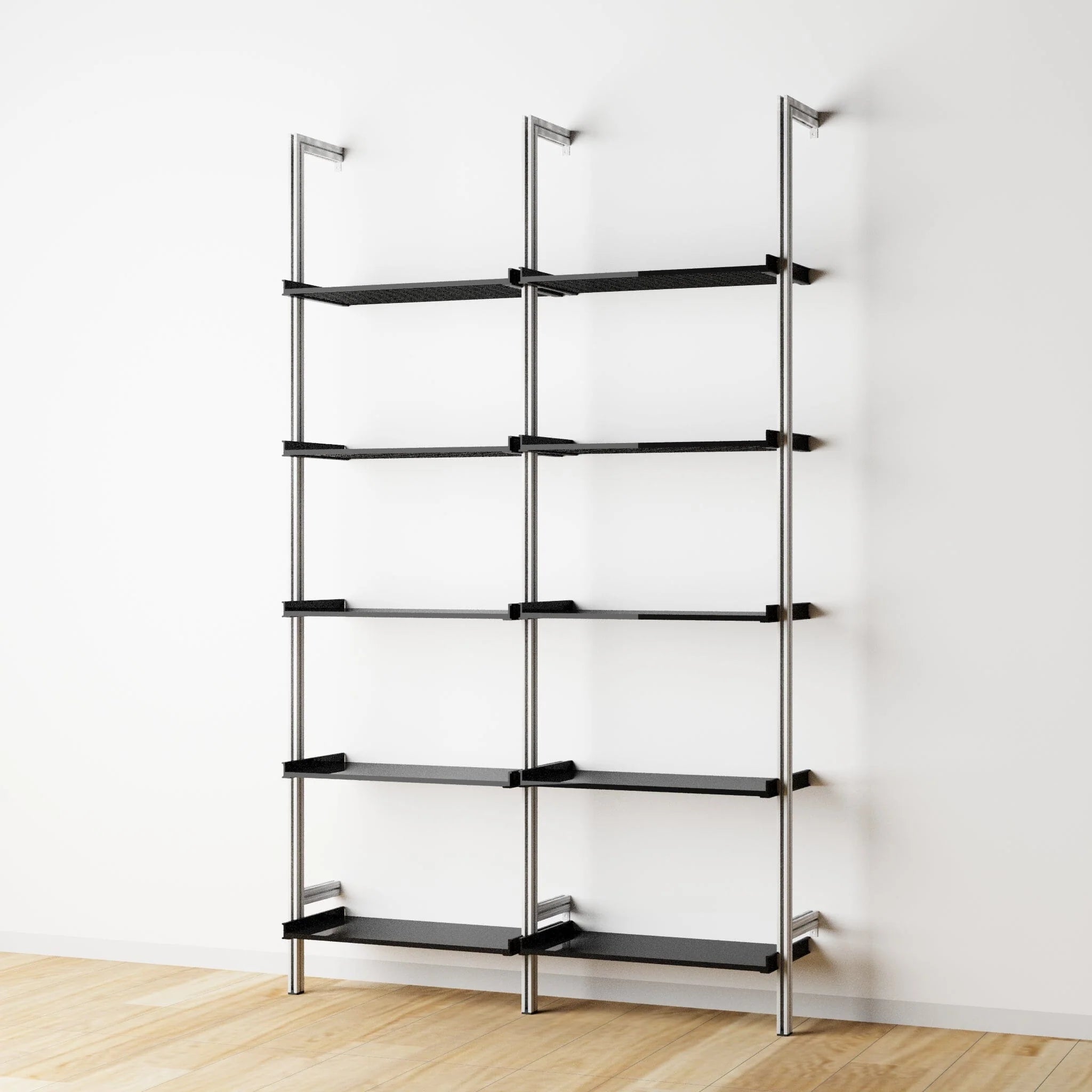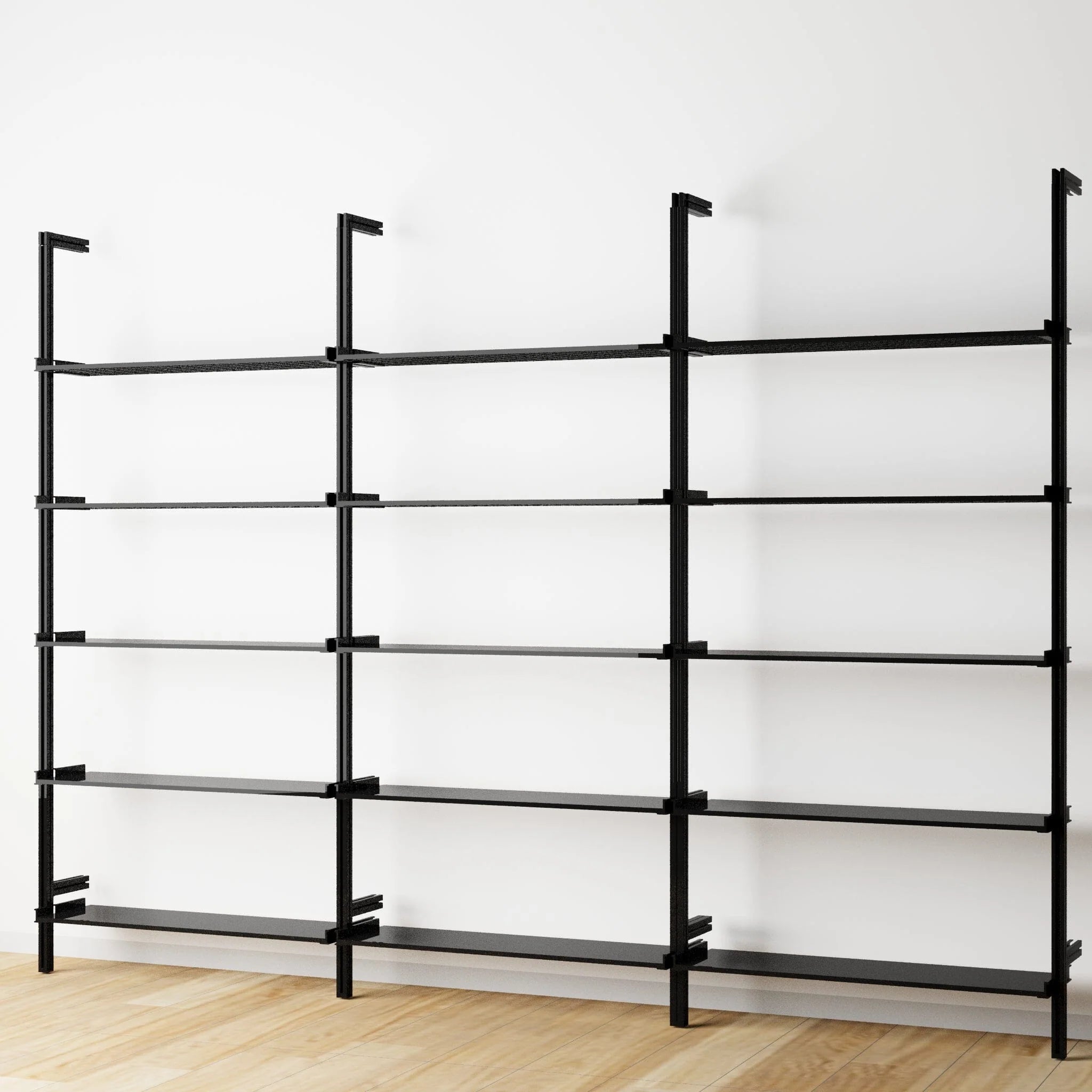 Immerse yourself in the strength and sleekness of our pole-mounted Modular Shelving Units from . Crafted from extruded anodized aluminum, this shelving system is not just furniture; it's a testament to durability and elegance. The pole-mounted design ensures stability, while the aluminum construction provides a modern and sophisticated aesthetic, turning your space into a showcase of strength and style.