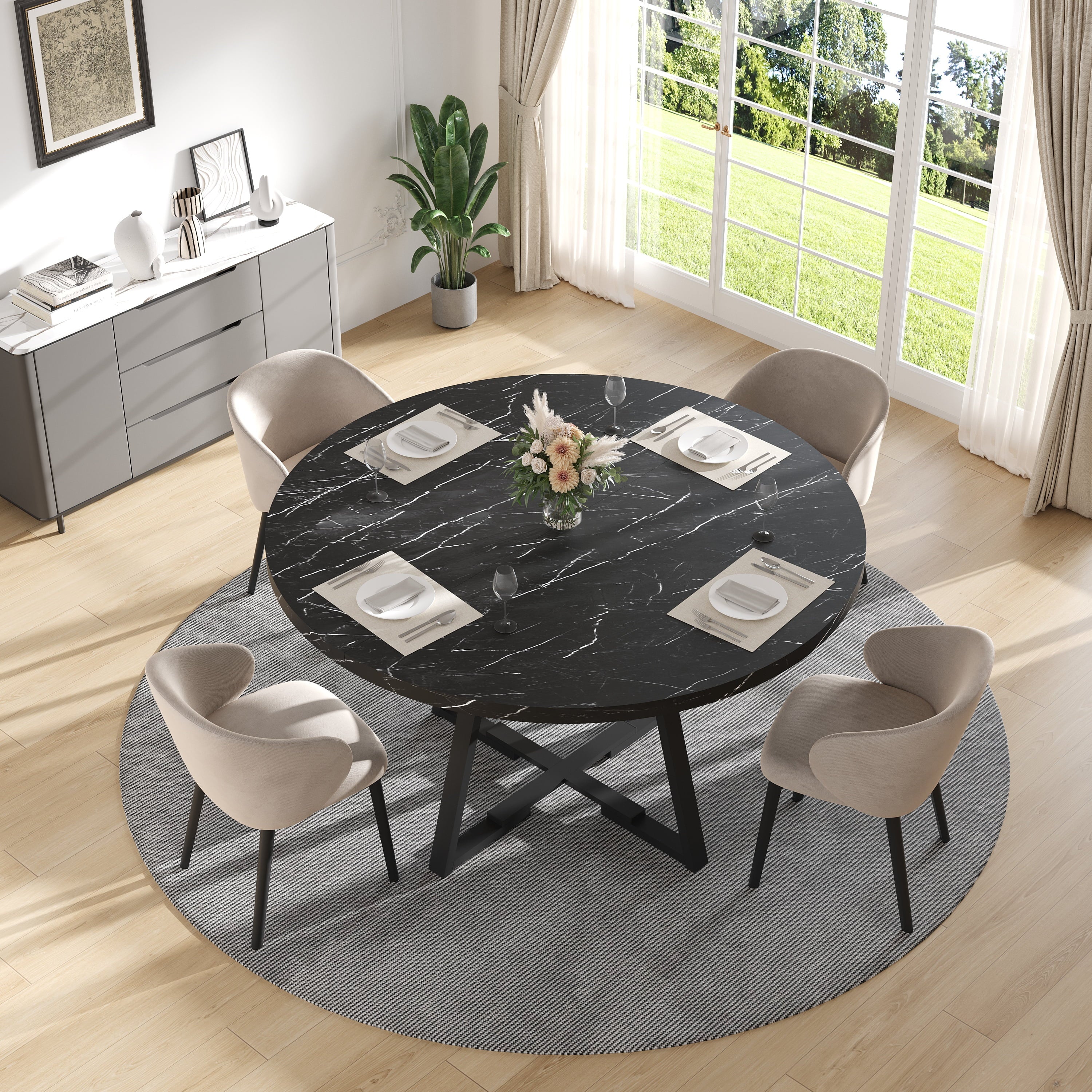 Sleek black faux marble tabletop for a luxurious look