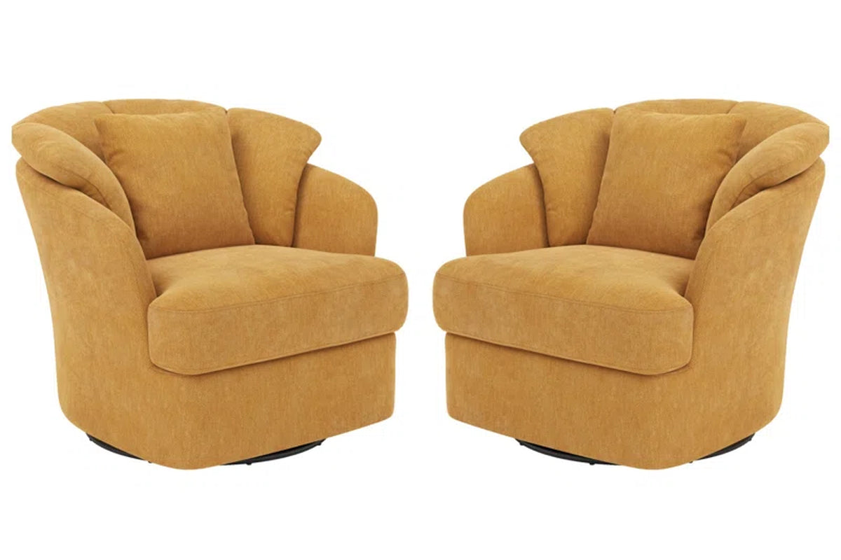 Add comfort and sophistication to your living space with the Rowena Mid-Century Swivel Barrel Chair. Designed with a rounded barrel shape and soft fabric upholstery, it offers cozy seating and timeless elegance. The 360° swivel base allows easy movement, while the plush padding and armrests provide excellent support. Perfect for living rooms, reading corners, or bedrooms, this chair blends mid-century style with modern comfort.