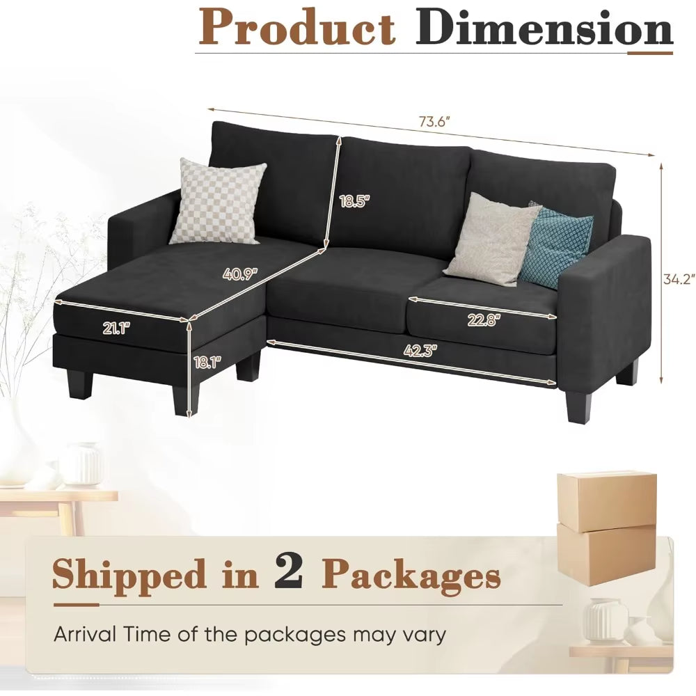 Perfect for apartments or cozy living rooms, the 3-Seat L-Shaped Sofa combines comfort, versatility, and modern style. The convertible chaise can be positioned on either side to fit your layout, while the soft fabric upholstery and plush cushions provide all-day comfort. Compact yet spacious, this sofa is ideal for small spaces without compromising on style or relaxation.