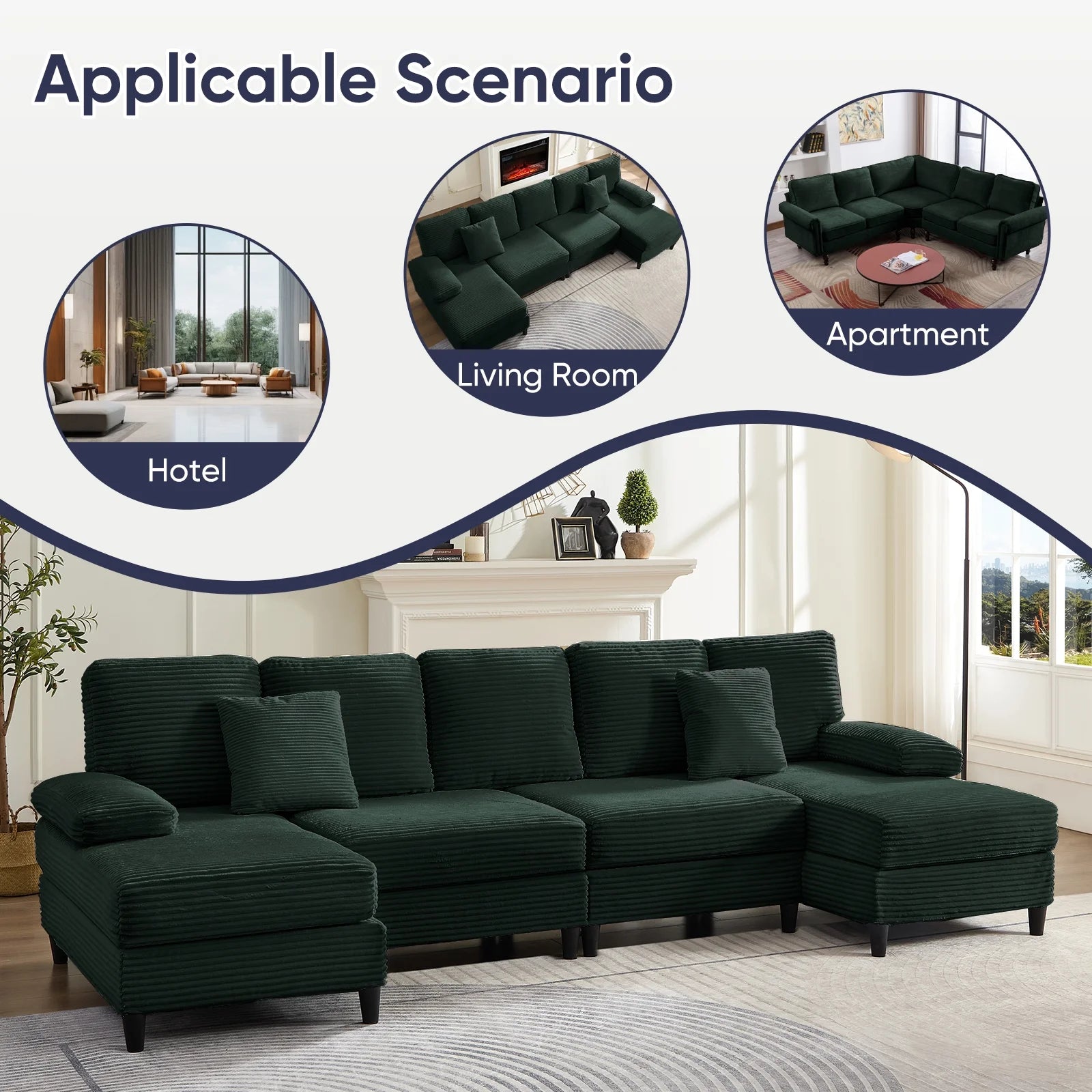 Add comfort and sophistication to your living space with the U-Shaped Sectional Sofa, featuring dual chaises and plush seating for ultimate relaxation. Upholstered in soft green fabric, this spacious couch offers both style and comfort, making it perfect for large families or entertaining guests. Its sturdy construction ensures durability, while the modern design complements any living room décor.